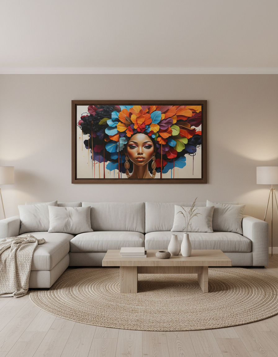 Este cuadro de diseño propio, impreso sobre tela y tapizado en bastidor, combina arte, emoción y color en una pieza que transforma cualquier espacio.