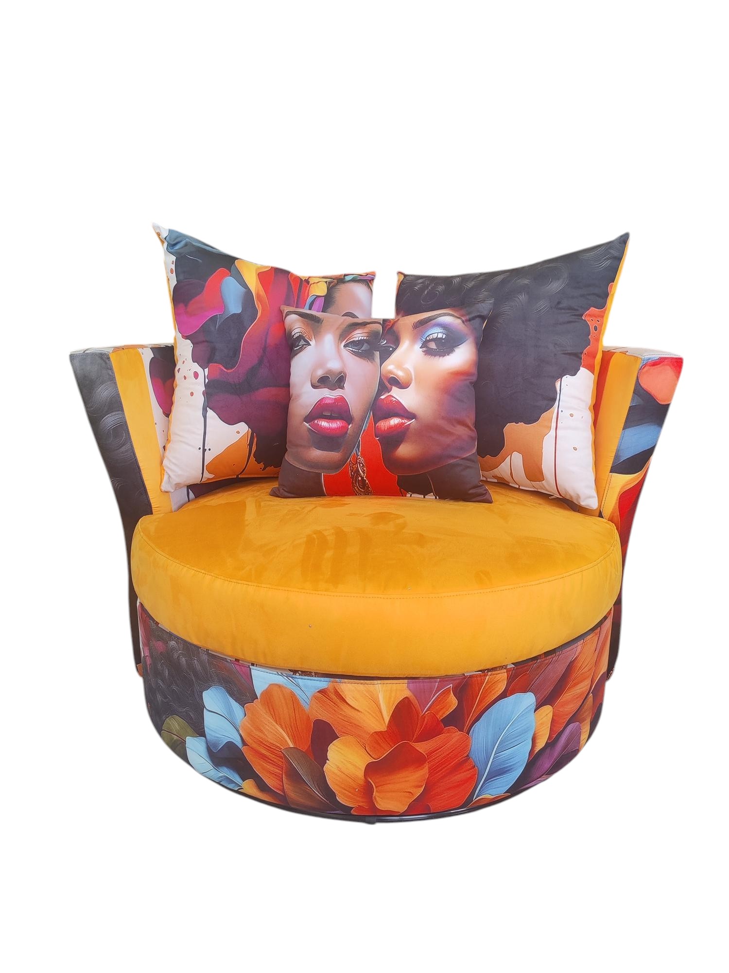 🌈 Sillón “Afro Chic” – Arte, confort y movimiento