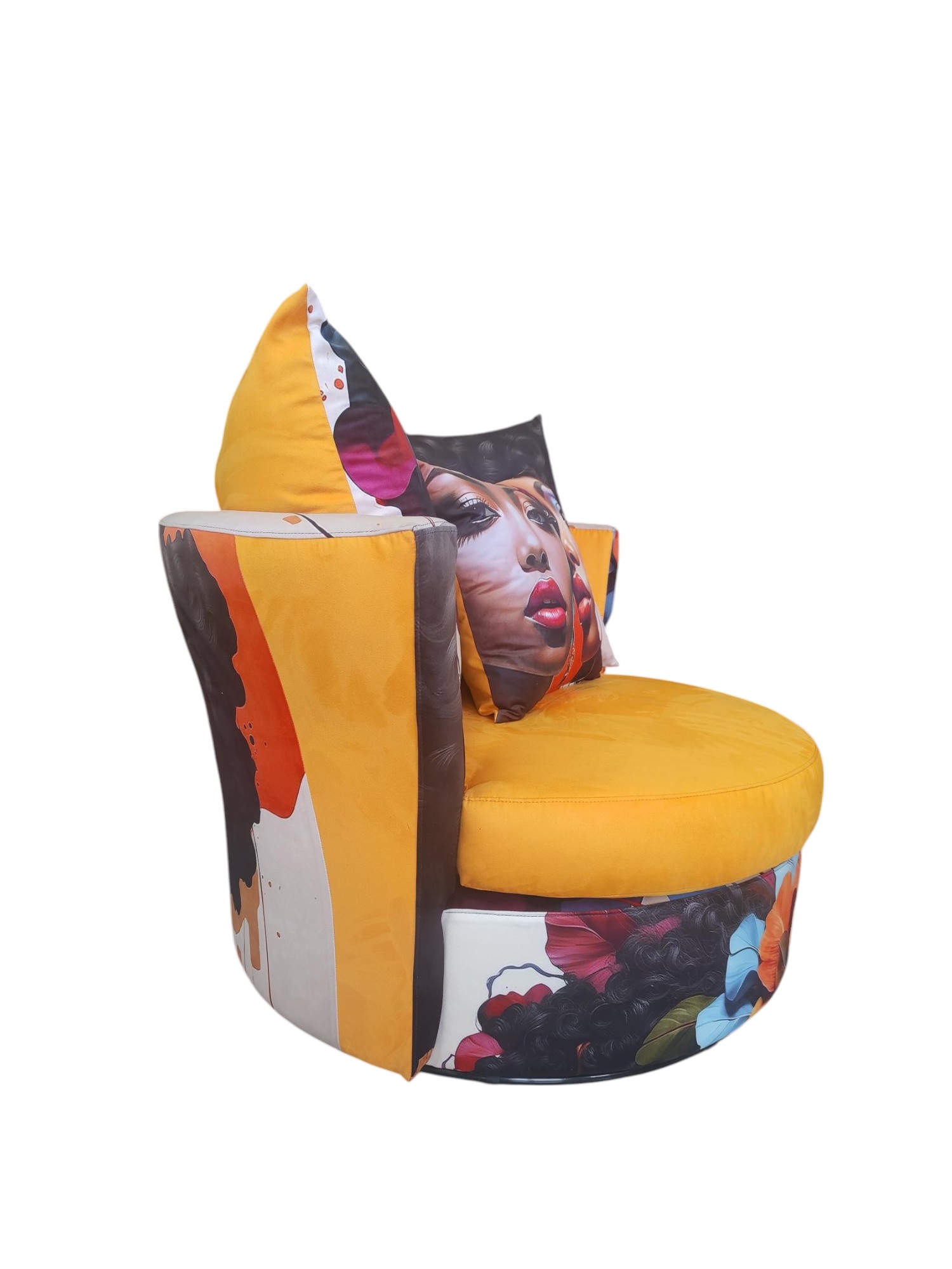 El Sillón “Afro Chic” no es solo un asiento, es una obra decorativa con alma. Ideal para livings, espacios creativos o rincones de relax, aporta un toque de lujo, color y movimiento a cualquier ambiente.