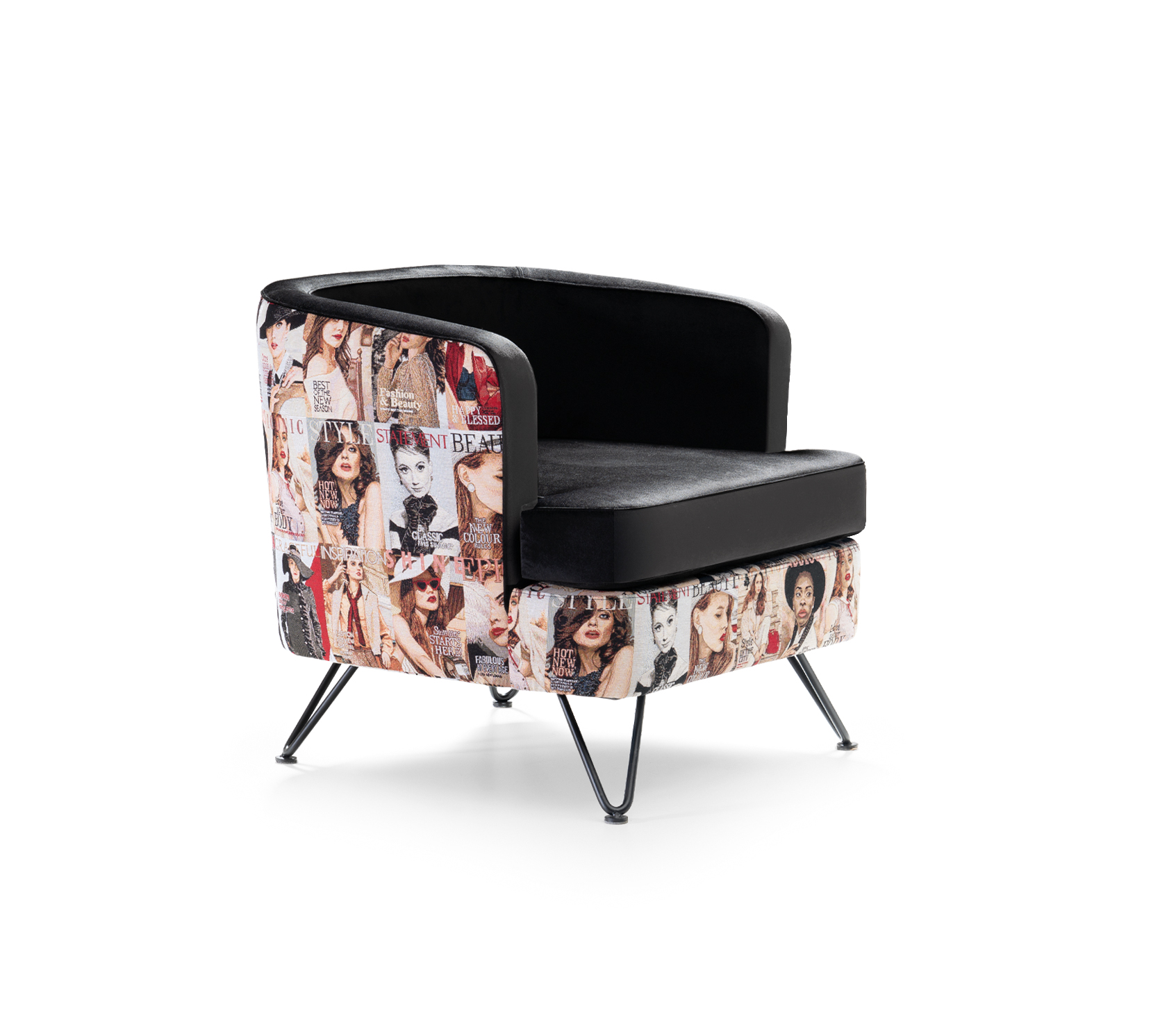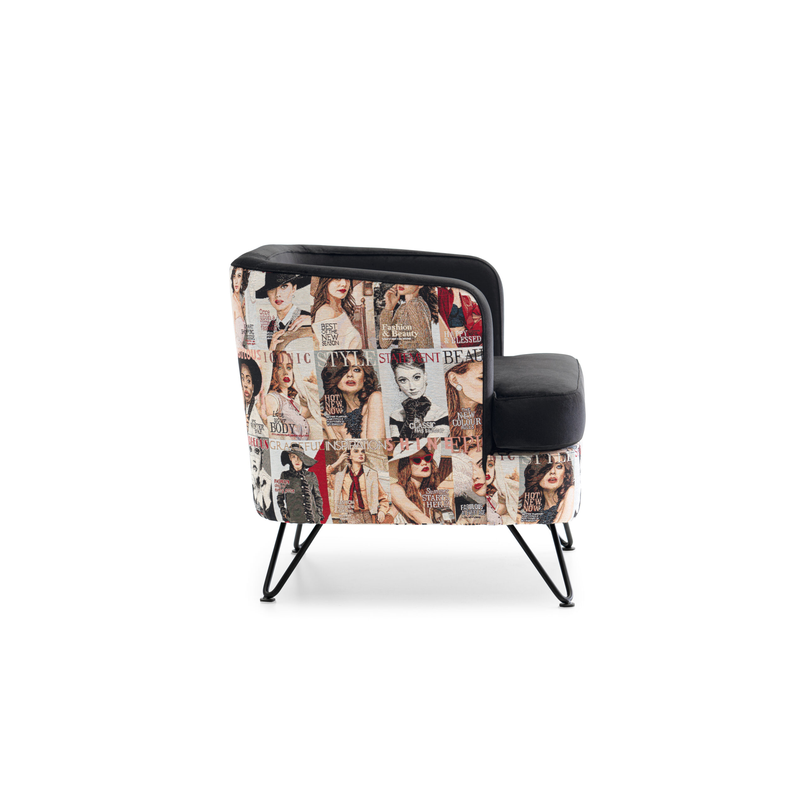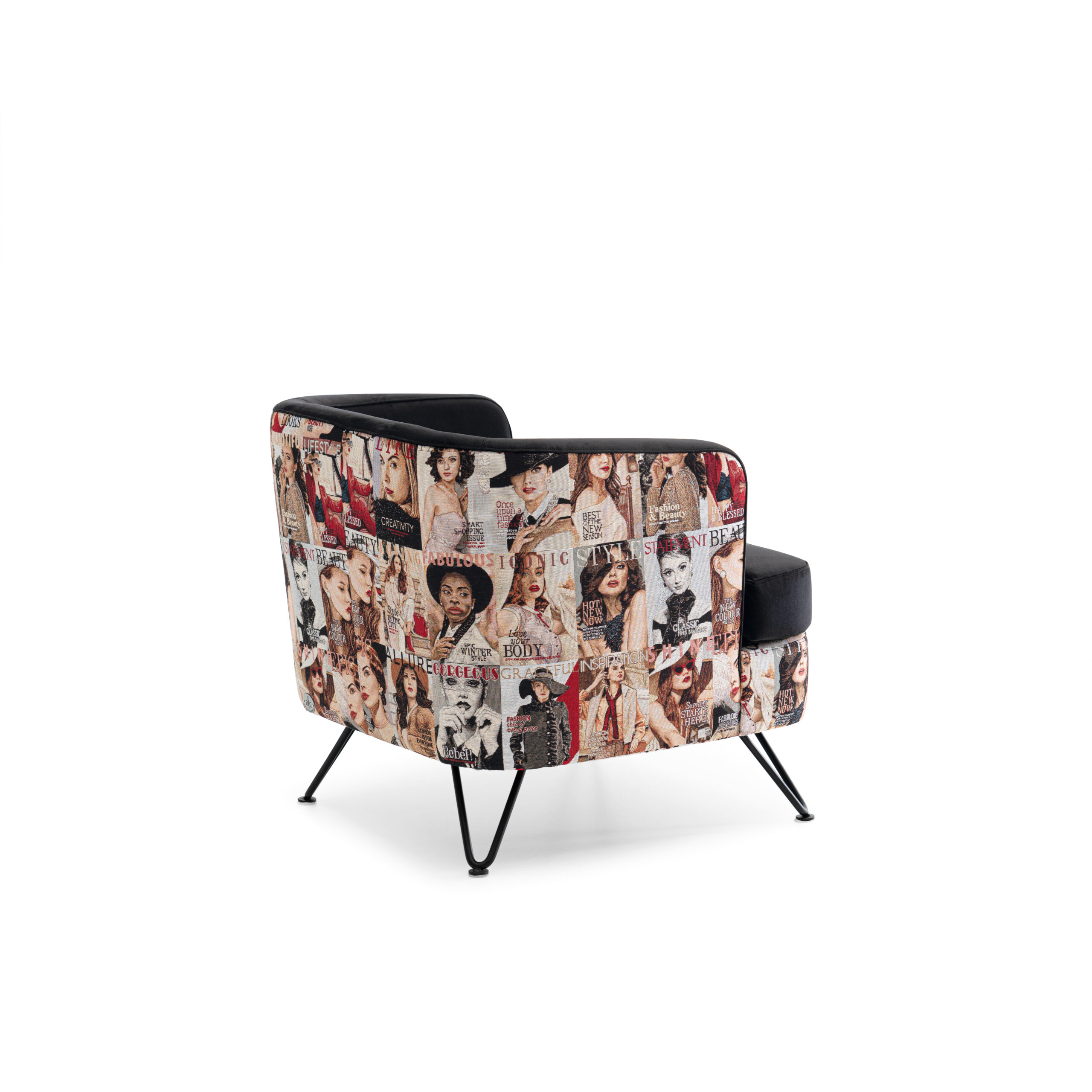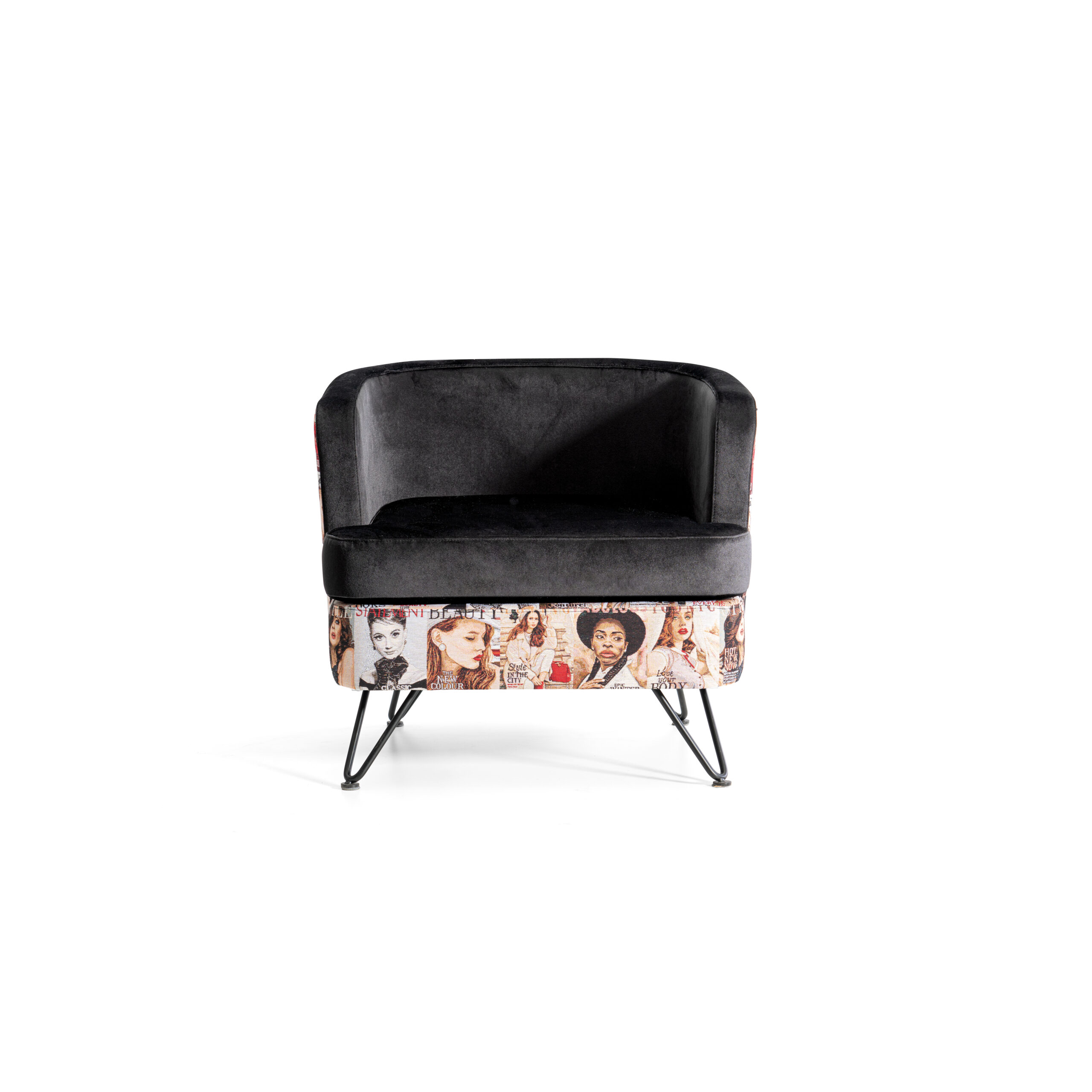 El Sillón “Bob” es una pieza de diseño que combina sofisticación, confort y personalidad. Su estética mezcla la suavidad del terciopelo negro con un tapizado inferior estampado de diseño exclusivo, creando un contraste visual lleno de carácter y estilo. Ideal para ambientes contemporáneos, juveniles o con un toque artístico.