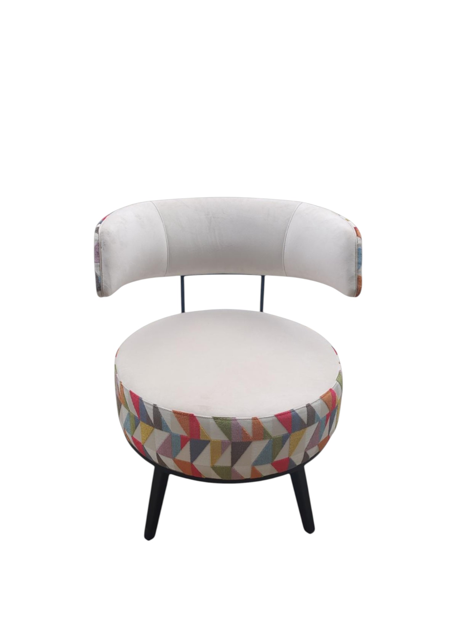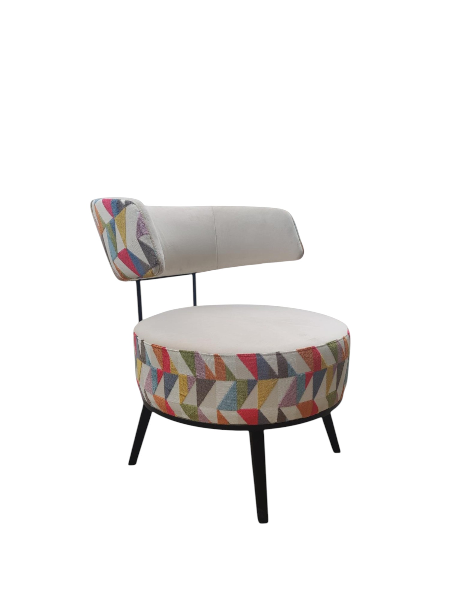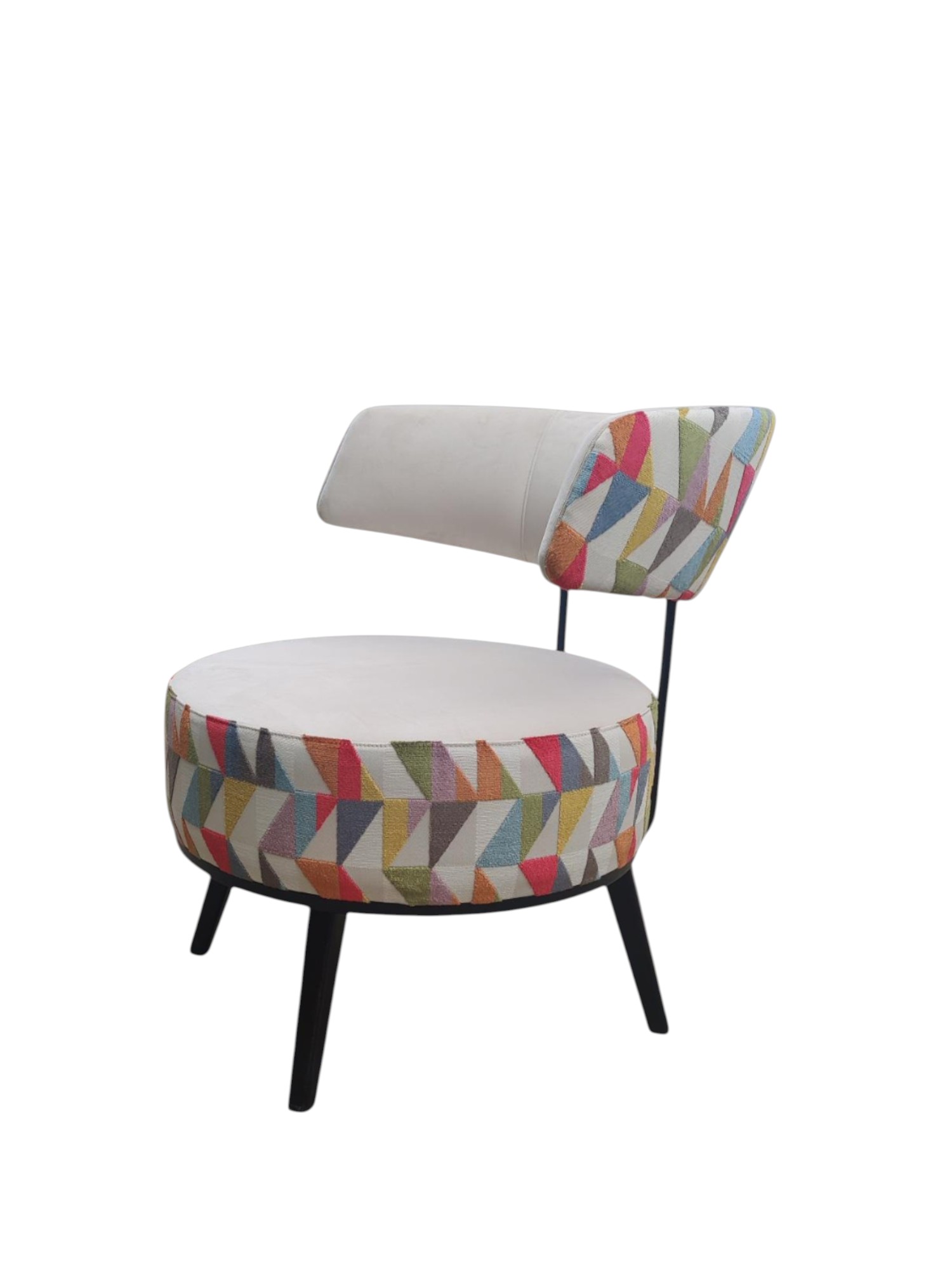El Sillón Adara es una pieza única que combina elegancia contemporánea con un toque retro. Su diseño redondeado y su tapizado en tonos neutros con patrones geométricos multicolor aportan estilo y vitalidad a cualquier espacio. Ideal para salones, dormitorios o rincones de lectura.