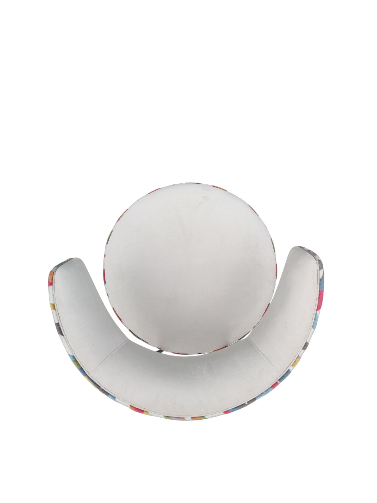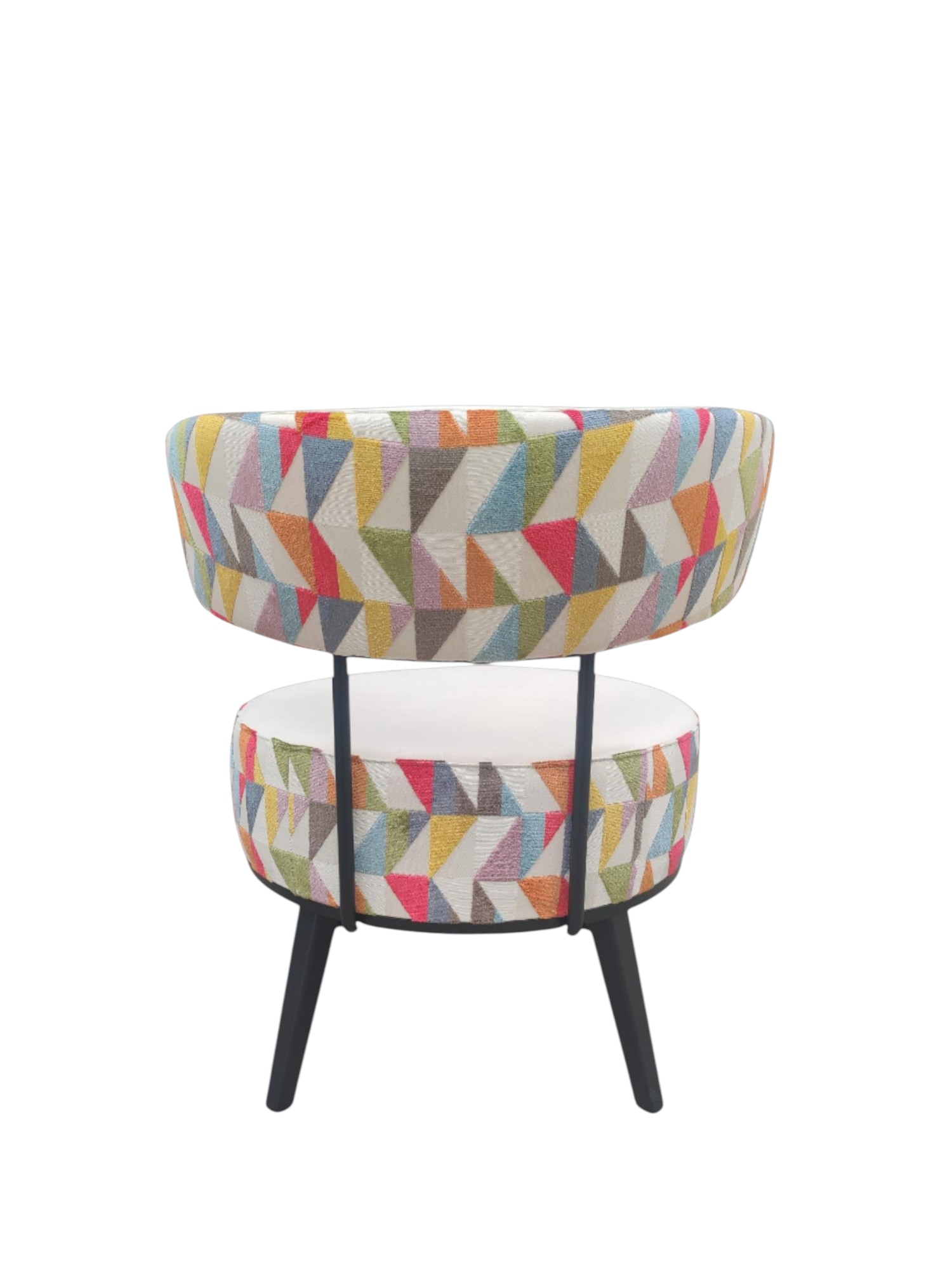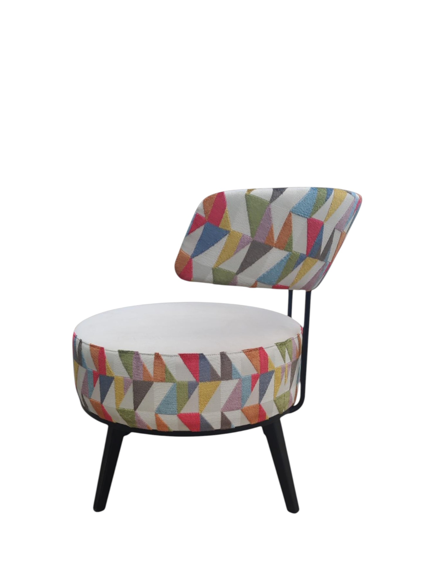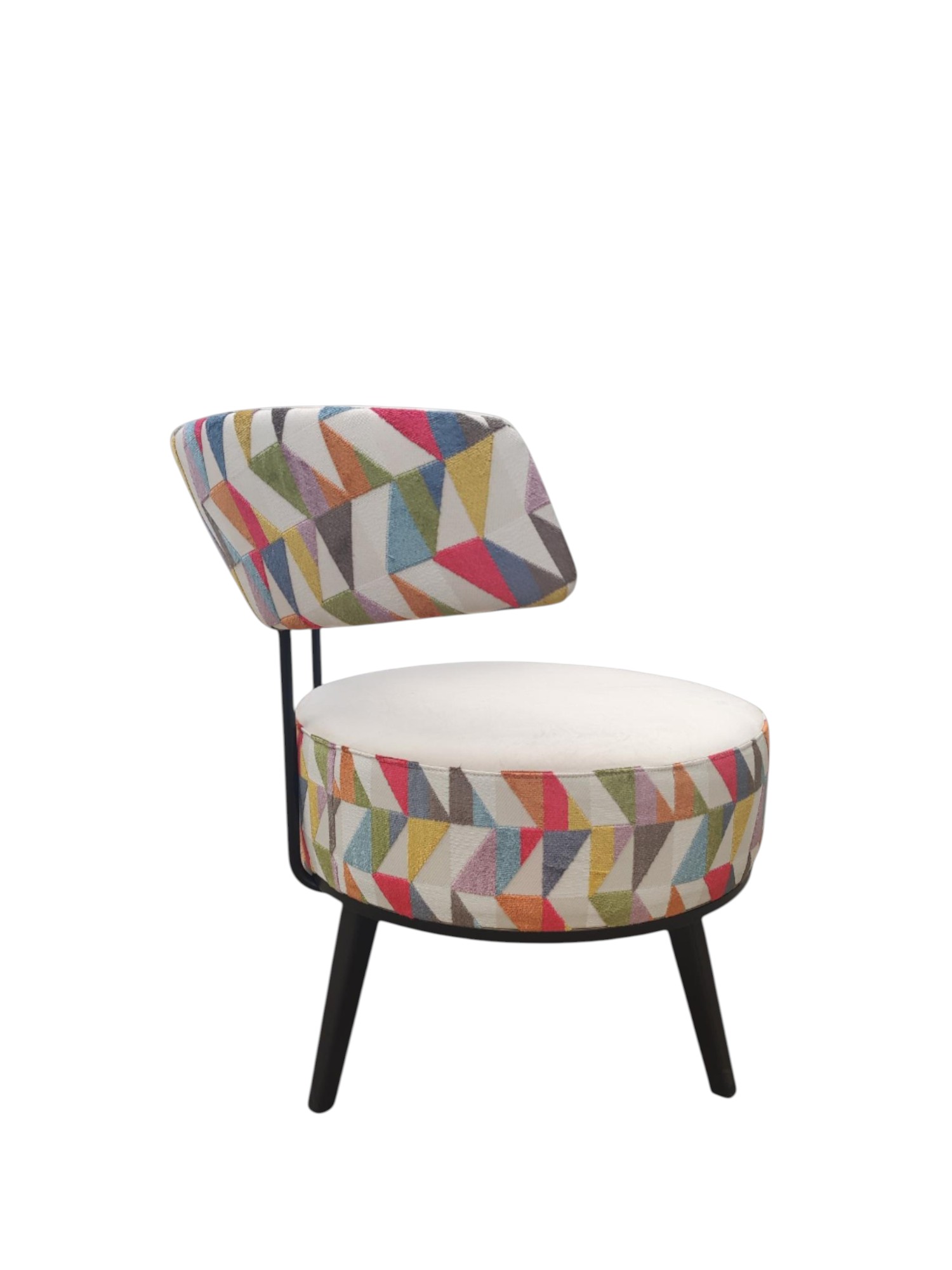 El Sillón Adara es una pieza única que combina elegancia contemporánea con un toque retro. Su diseño redondeado y su tapizado en tonos neutros con patrones geométricos multicolor aportan estilo y vitalidad a cualquier espacio. Ideal para salones, dormitorios o rincones de lectura.