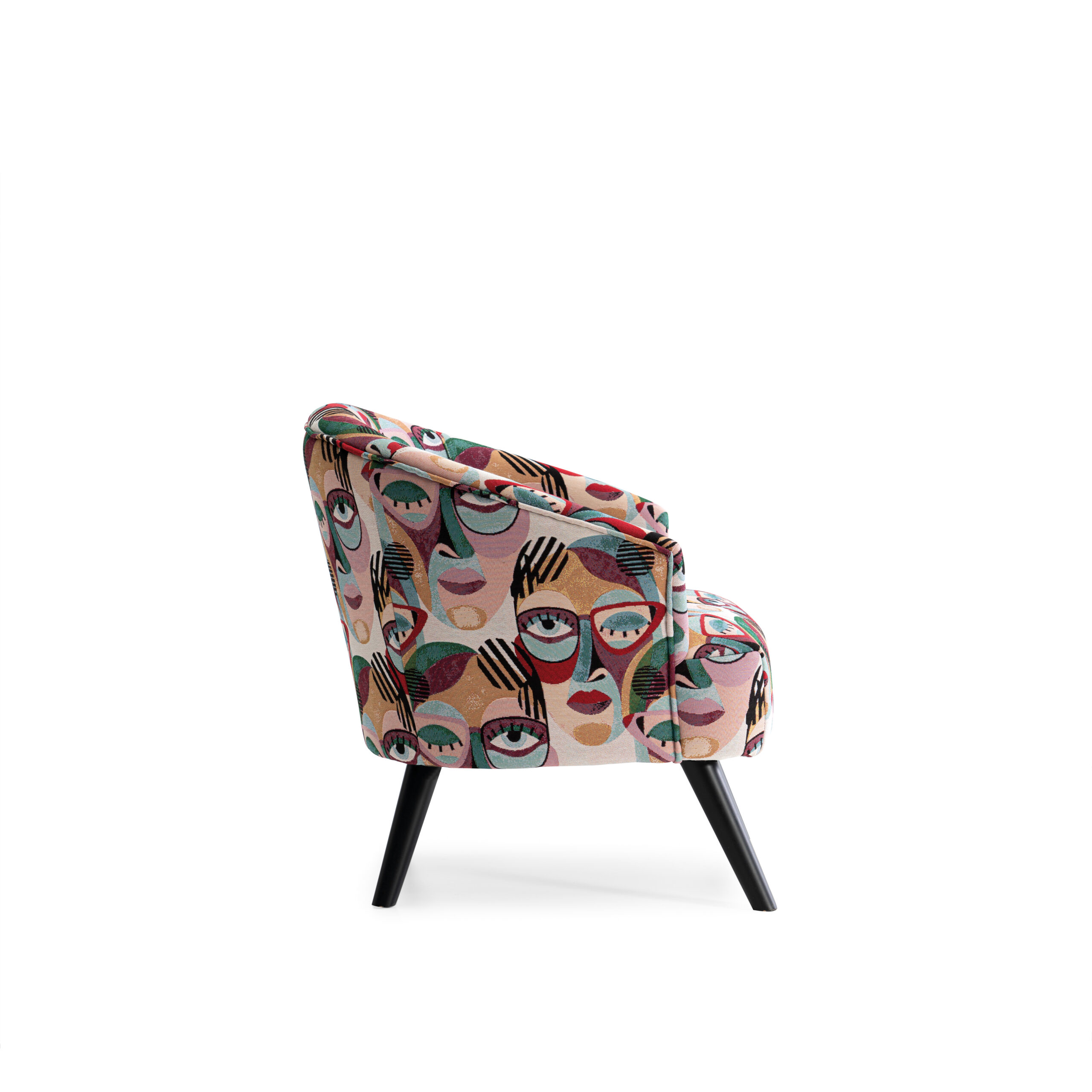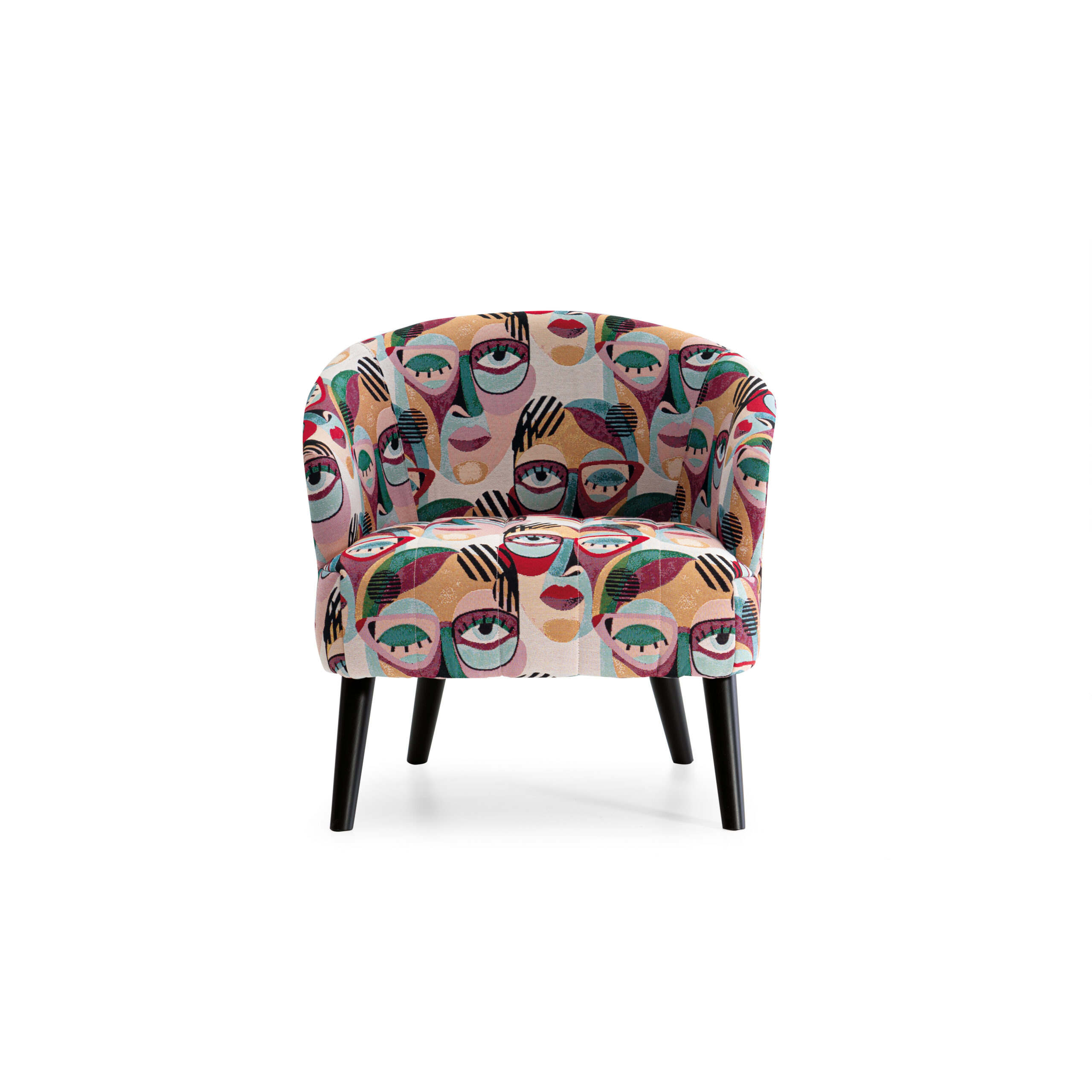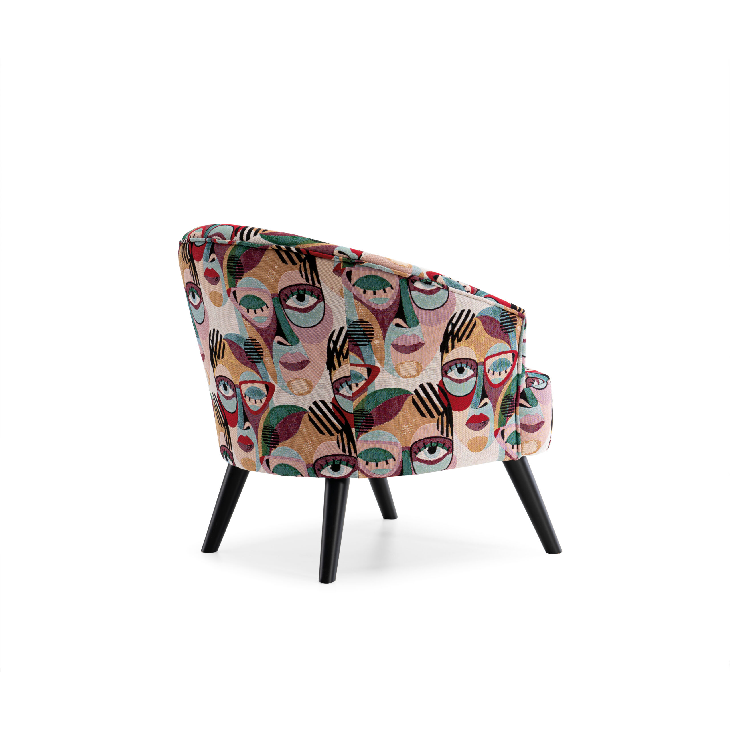 El Sillón “Faces” es ideal para livings, estudios o espacios creativos. Su diseño atrevido y su tapizado artístico llenan el ambiente de color y dinamismo, convirtiéndolo en el centro de todas las miradas.