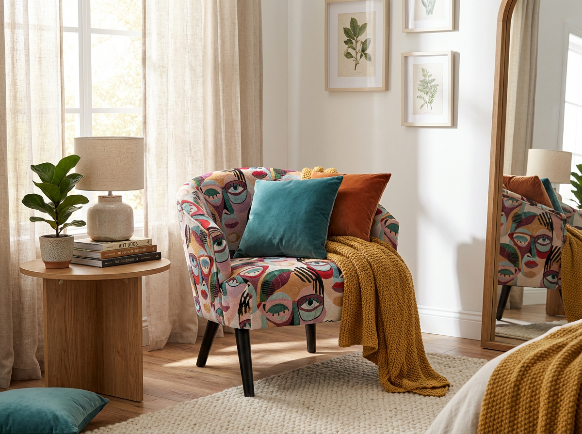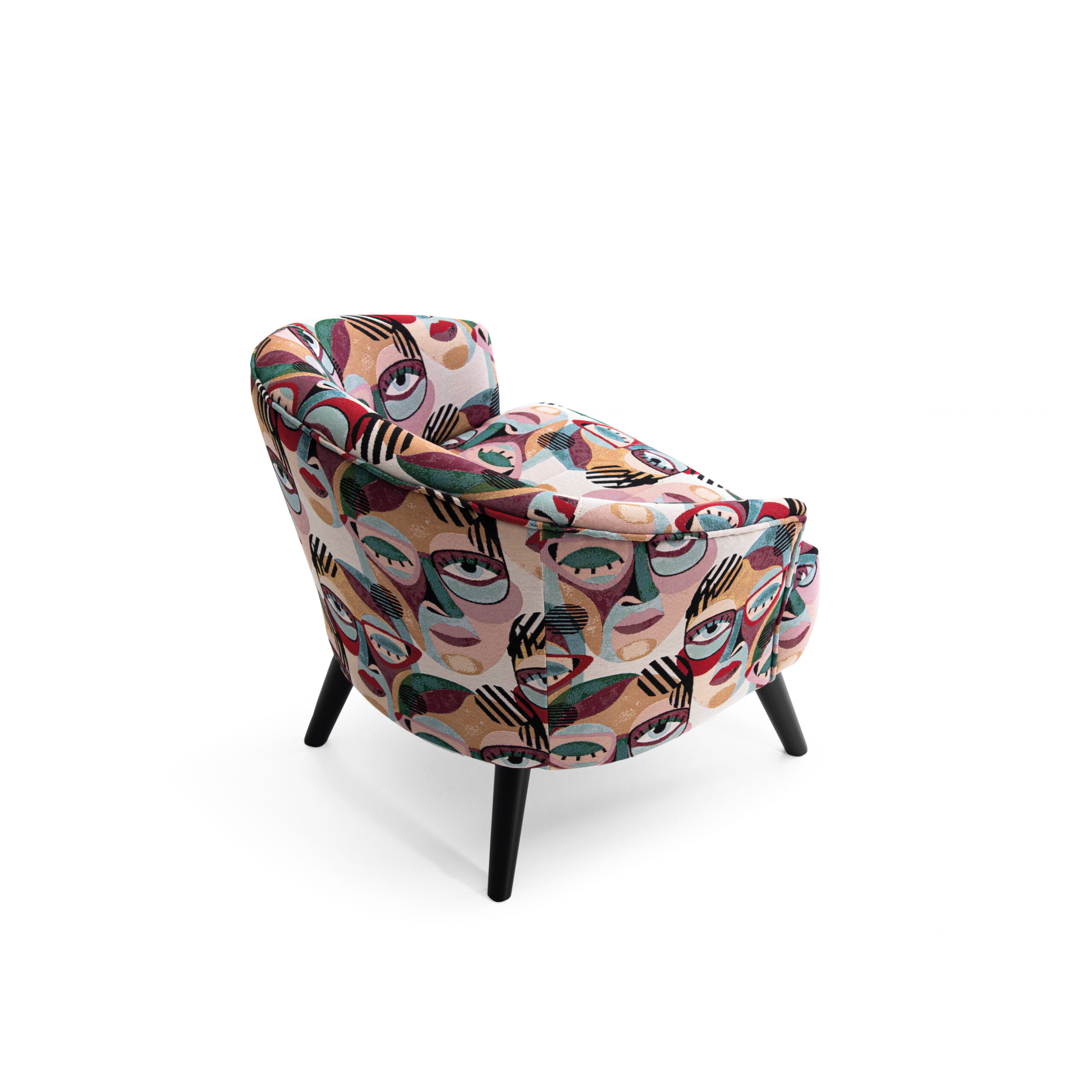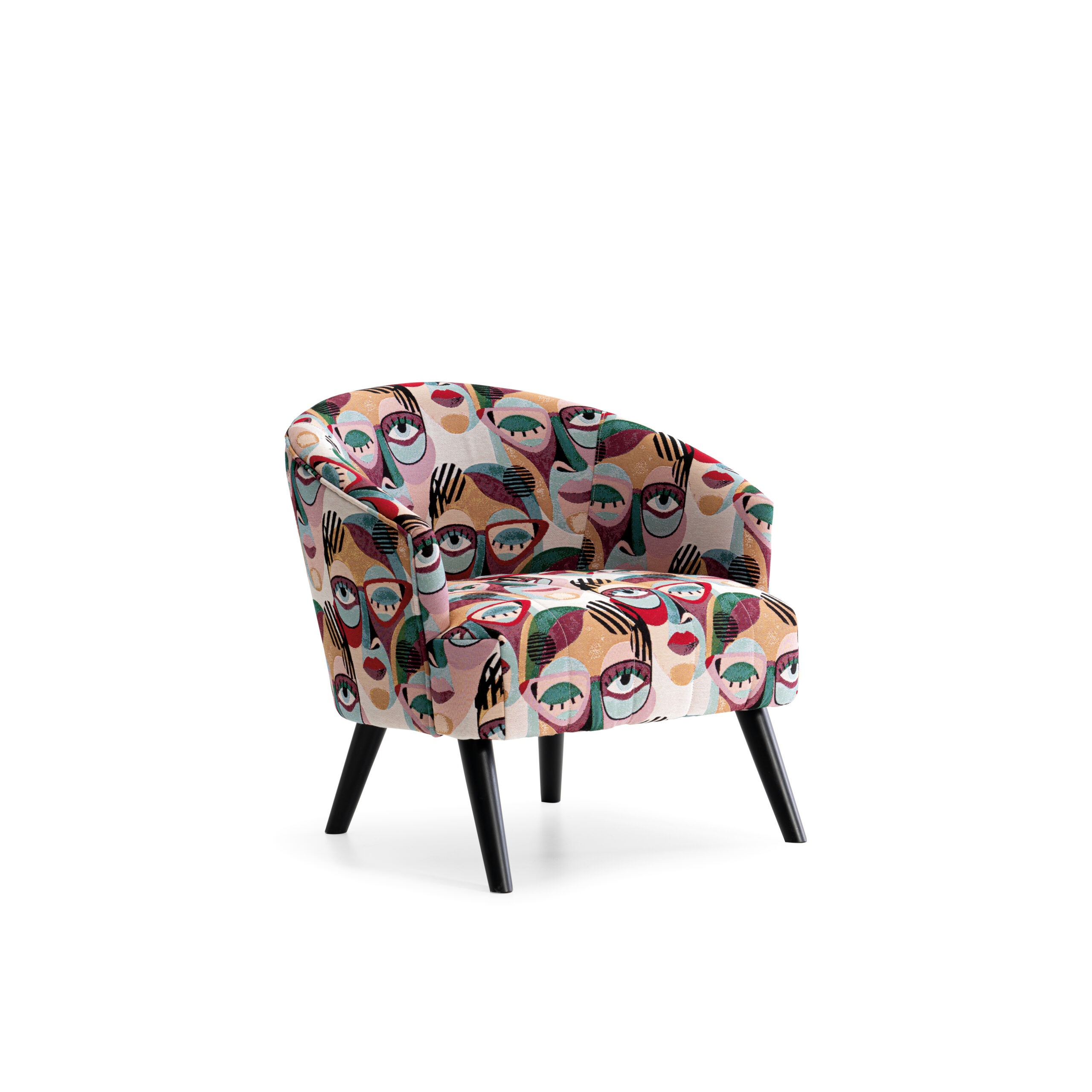 El Sillón “Faces” es ideal para livings, estudios o espacios creativos. Su diseño atrevido y su tapizado artístico llenan el ambiente de color y dinamismo, convirtiéndolo en el centro de todas las miradas.