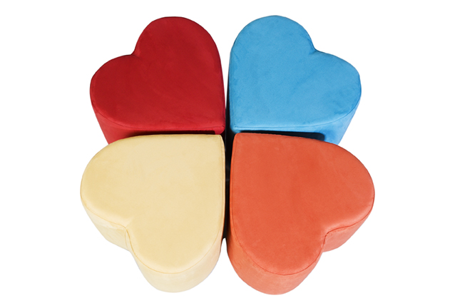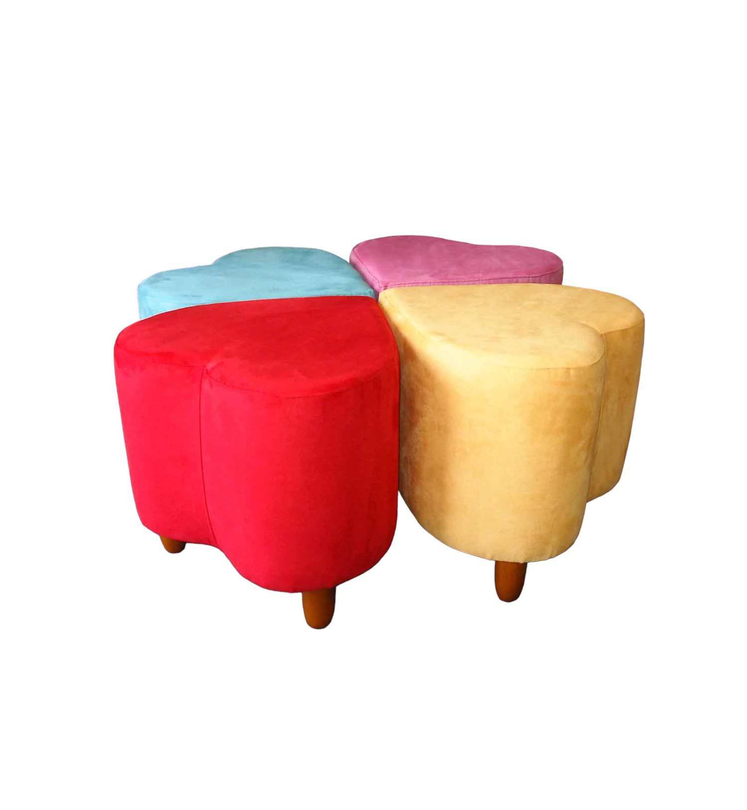 Pouf tapizado con forma de corazón y patas de madera