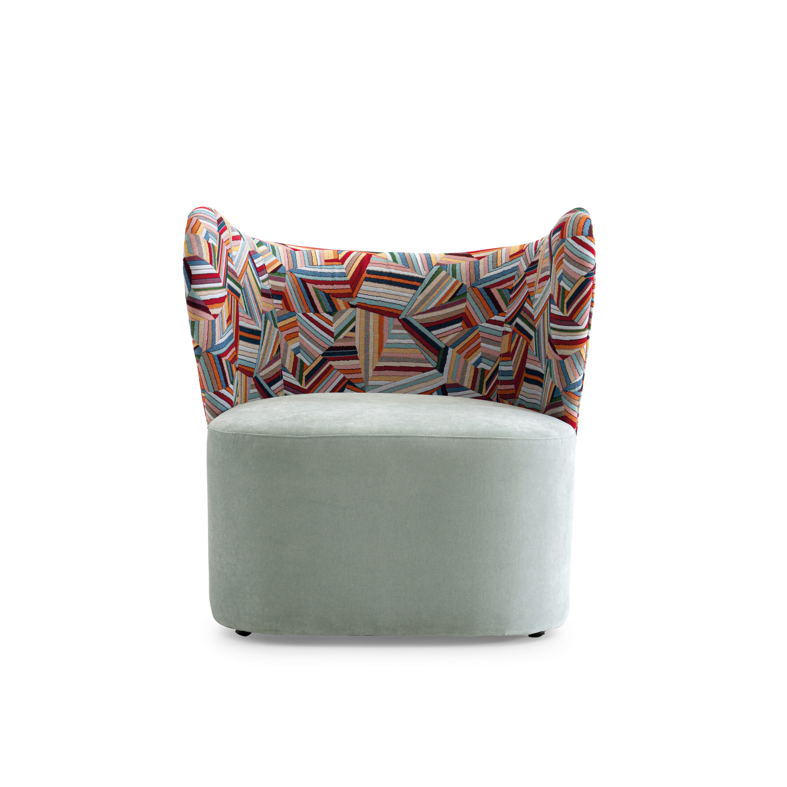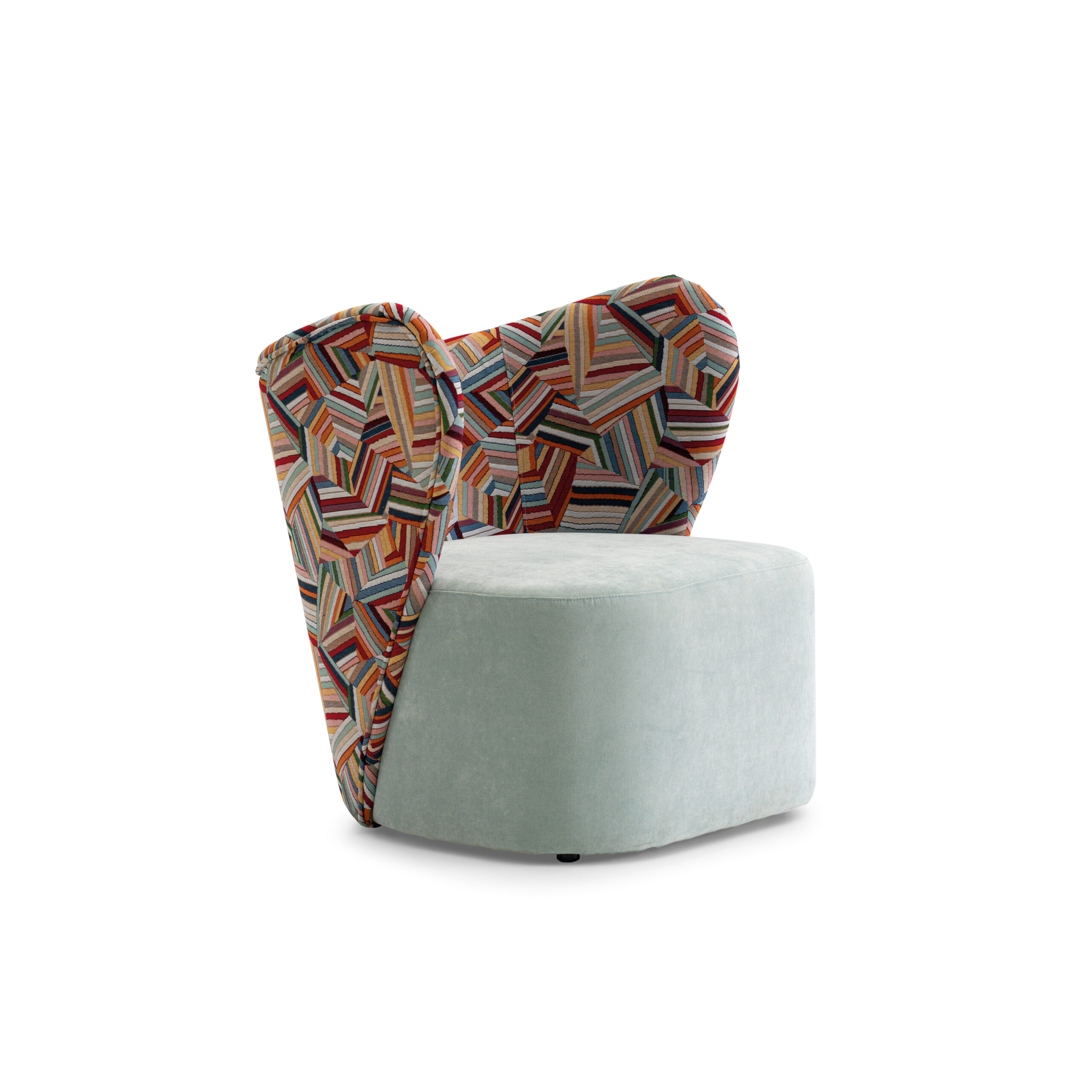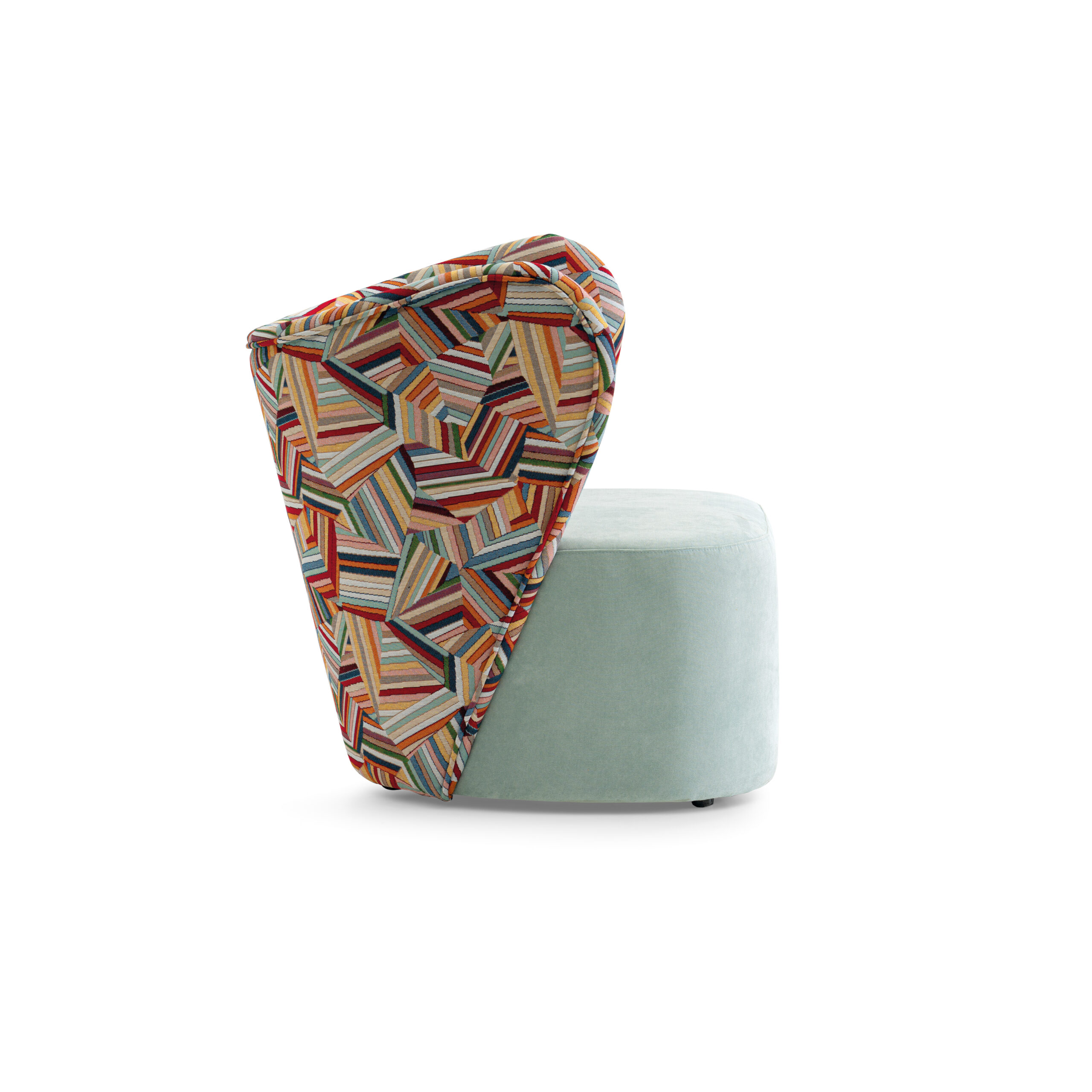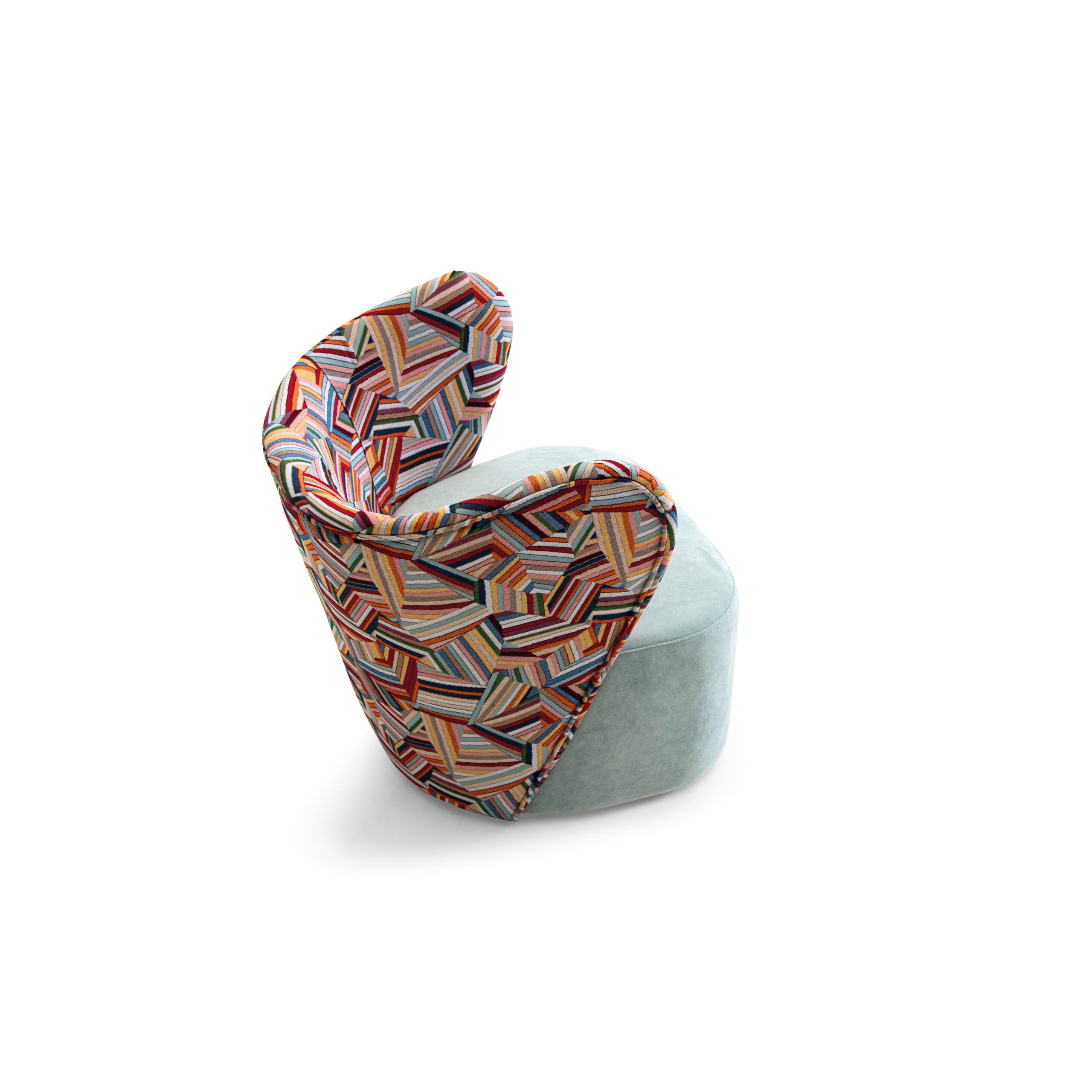 Tapizado: tejido estampado de diseño exclusivo + asiento en terciopelo verde agua marina