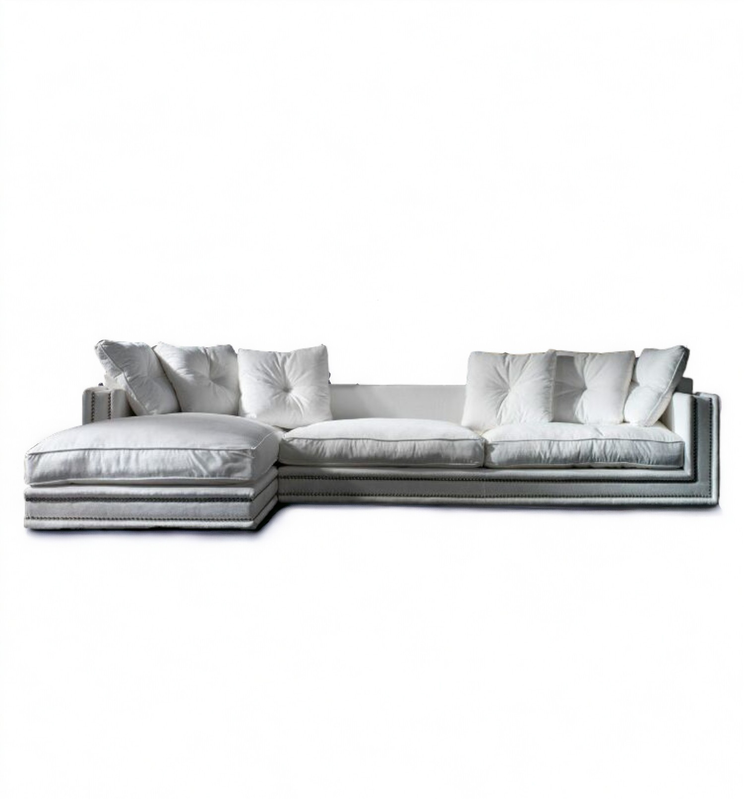 Este sofá de gran formato destaca por su diseño sofisticado y líneas depuradas, pensado para crear un ambiente elegante y acogedor en salones amplios. Su estética equilibrada combina una imagen contemporánea con detalles clásicos, ofreciendo una pieza versátil y atemporal.